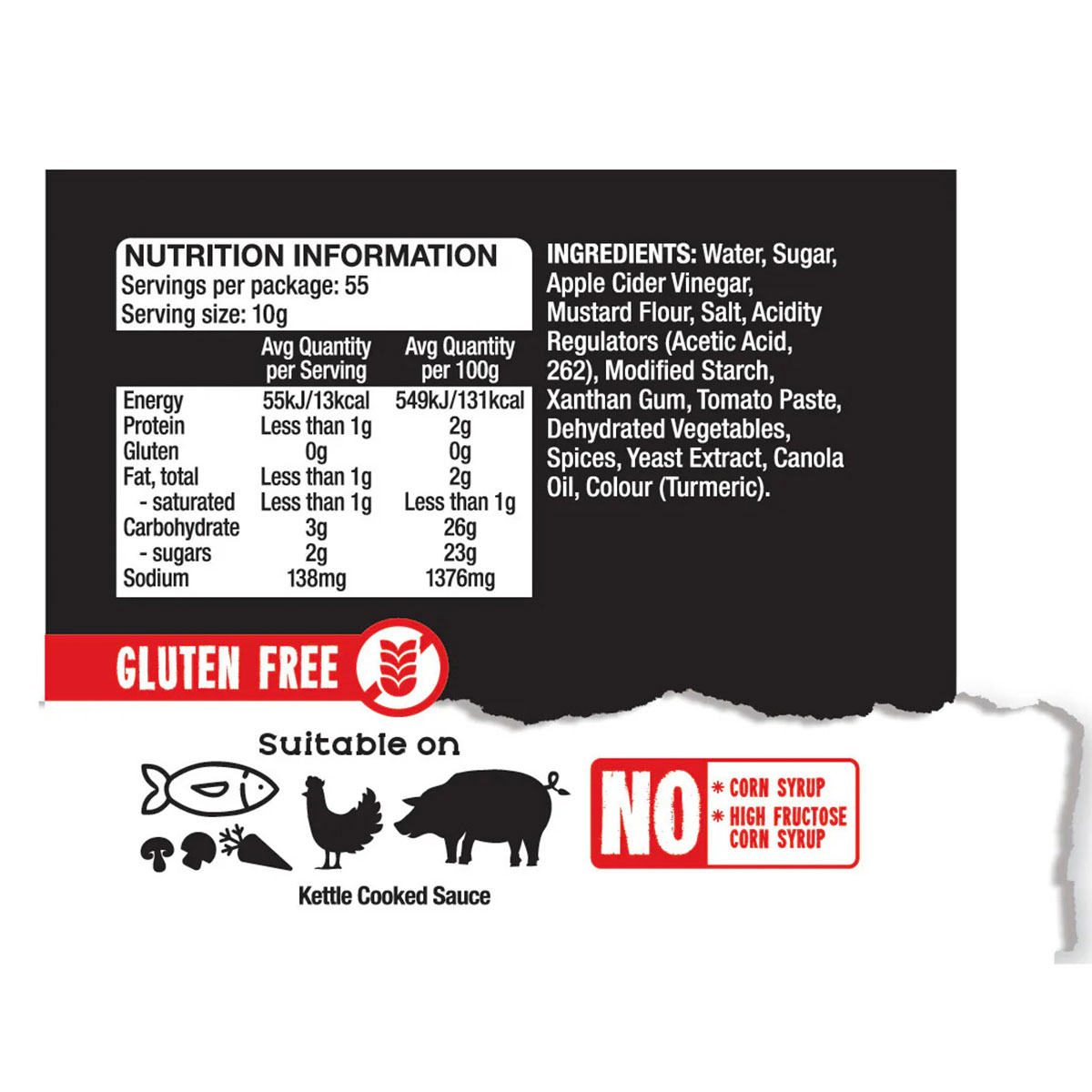 No Artificial Flavours, No Artificial Colours, Gluten-free, No Added MSG, No Artificial Sweeteners, Vegetarian